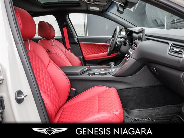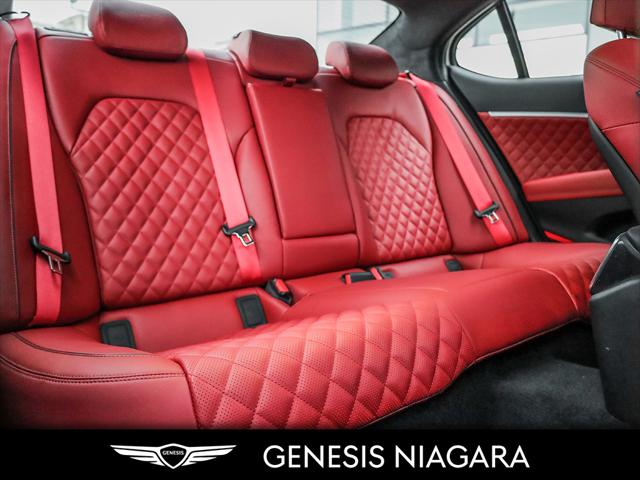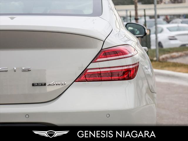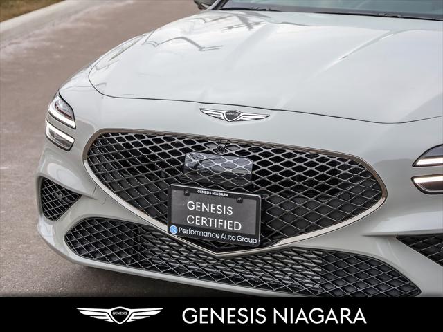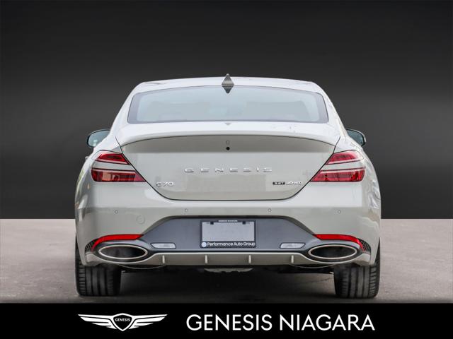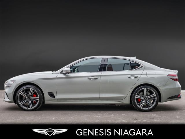 This 2025 G70 3.3T represents great value in a sports sedan with plenty of power and features that include. - Front and Rear parking assistance sensors - Rain-sensing wipers - Power-folding auto-dimming heated side mirrors with Genesis logo puddle lamps - Power tilt-and-telescopic steering column - Drivers Integrated Memory System + Power Driver and Passenger seat adjustment - Ventilated front seats heated rear seats - Wireless charging pad - 15-speaker Lexicon surround sound audio system - Dual exhaust system with oval outlets - 16-way Power Driver Seat including Power Side Bolster & Cushion Extension - Head-Up Display (HUD) - Power trunk lid - 3.3L twin-turbocharged V6 engine with 365hp and 376 lb. ft. of torque - Variable Gear Ratio (VGR) steering rack - Sport-tuned Electronically Control Suspension - Limited Slip Differential (LSD) - Brembo braking system - Nappa leather seating surfaces with sport quilting - Microfibre suede headliner - Sport 19'' aluminum alloy wheels with high-performance summer tires - Alloy pedals - Variable Exhaust Valve - Surround view monitor with Blind Spot View Monitor - Front passenger seat walk-in device - Acoustic Laminated Glass (Front) We are confident your shopping experience with us will be a luxury experience with our ''no pressure'' sales team who are here to help you make the right choice. We are conveniently located at 342 Ontario Street in St.Catharines right off the QEW. We look forward to having you here and experiencing the Genesis difference. **Free Carproof online! Specialist onsite for all credit approvals!*