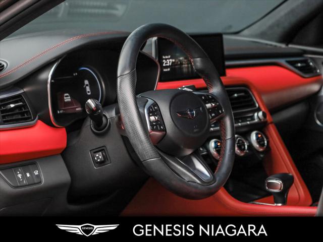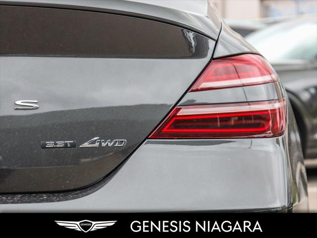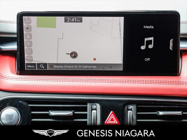 This 2023 G70 3.3T represents great value in a sports sedan with plenty of power and features that include. - Front and Rear parking assistance sensors - Rain-sensing wipers - Power-folding auto-dimming heated side mirrors with Genesis logo puddle lamps - Power tilt-and-telescopic steering column - Drivers Integrated Memory System + Power Driver and Passenger seat adjustment - Ventilated front seats heated rear seats - Wireless charging pad - 15-speaker Lexicon surround sound audio system - Dual exhaust system with oval outlets - 16-way Power Driver Seat including Power Side Bolster & Cushion Extension - Head-Up Display (HUD) - Power trunk lid - 3.3L twin-turbocharged V6 engine with 365hp and 376 lb. ft. of torque - Variable Gear Ratio (VGR) steering rack - Sport-tuned Electronically Control Suspension - Limited Slip Differential (LSD) - Brembo braking system - Nappa leather seating surfaces with sport quilting - Microfibre suede headliner - Sport 19'' aluminum alloy wheels with high-performance summer tires - Alloy pedals - Variable Exhaust Valve - Surround view monitor with Blind Spot View Monitor - Front passenger seat walk-in device - Acoustic Laminated Glass (Front) We are confident your shopping experience with us will be a luxury experience with our ''no pressure'' sales team who are here to help you make the right choice. We are conveniently located at 342 Ontario Street in St.Catharines right off the QEW. We look forward to having you here and experiencing the Genesis difference. **Free Carproof online! Specialist onsite for all credit approvals!*