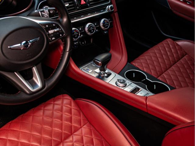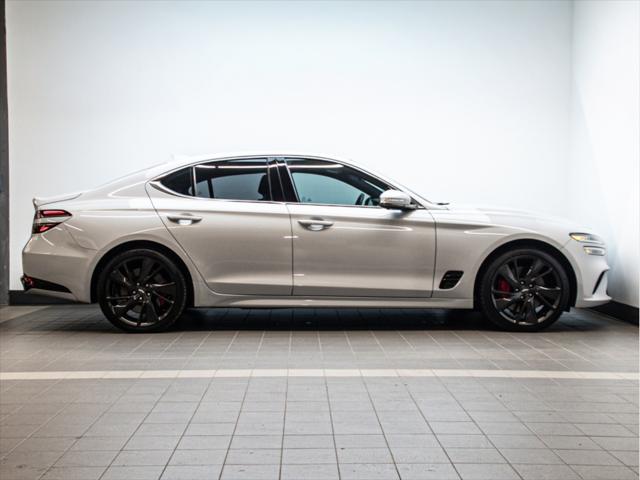 Moteur et Performance Moteur V6 biturbo de 3 3 L à essence Puissance : 365 chevaux à 6 000 tr/min Couple : 376 lb-pi à 1 300–4 500 tr/min Transmission automatique à 8 rapports avec palettes au volant Traction intégrale (AWD) Suspension à commande électronique Freins haute performance Brembo Sélecteur de modes de conduite (Éco Confort Sport Sport+) Contrôle de départ (Launch Control) Consommation (estimée) Ville : 13 3 L/100 km Route : 9 7 L/100 km Combinée : 11 7 L/100 km Type de carburant : Super (essence premium) Éléments extérieurs Roues en alliage de 19 po (design sport) Phares et feux arrière quadruples à DEL Calandre sport avec fini chrome foncé Toit ouvrant électrique Coffre intelligent mains libres Rétroviseurs extérieurs chauffants et repliables électriquement Intérieur et confort Sellerie en cuir Nappa Siège du conducteur à 16 réglages électriques Siège du passager à 12 réglages électriques Sièges avant chauffants et ventilés Sièges arrière chauffants Volant chauffant Garnitures intérieures en aluminium Climatisation automatique à deux zones Éclairage dambiance intérieur Infodivertissement et connectivité Écran tactile de 10 25 po Navigation avec circulation en temps réel Apple CarPlayMC et Android AutoMC Système audio haut de gamme Lexicon à 15 haut-parleurs Chargeur sans fil pour téléphone intelligent Tableau de bord numérique 3D de 12 3 po Sécurité et aide à la conduite Assistance à la conduite sur autoroute Assistance à lévitement de collision dans les angles morts Assistance à la prévention de collision frontale (piéton cycliste intersection) Assistance à lévitement de collision transversale arrière Caméra à vue panoramique (360°) Régulateur de vitesse intelligent avec arrêt/démarrage Assistance au maintien et au suivi de voie Avertisseur de distance de stationnement (avant et arrière) Dimensions Longueur : 4 685 mm Largeur : 1 850 mm Hauteur : 1 400 mm Empattement : 2 835 mm Volume du coffre : 297 L