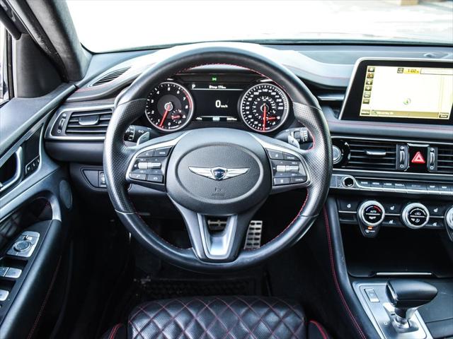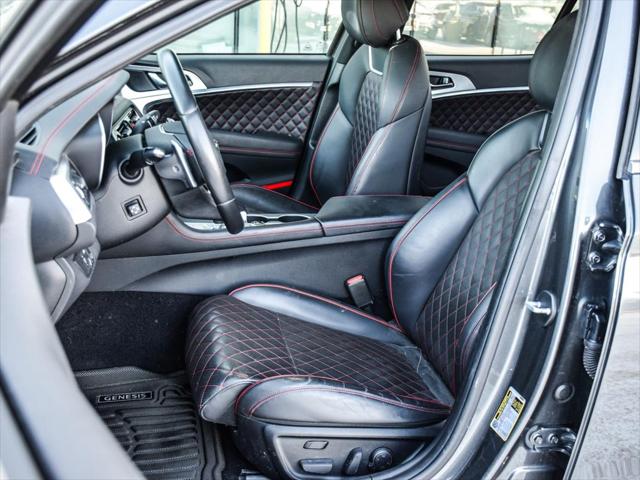 *BLACK/SPORT RED NAPPA LEATHER SEAT TRIM* *HIMALAYAN GREY* *Turbocharged* The Genesis G70 3.3T Sport AWD is an exhilarating sedan poised to impress with its dynamic performance and luxurious features. Nestled in the heart of Winnipeg this masterpiece boasts a powerful V6 Cylinder Engine delivering unmatched power and responsiveness. Its Automatic Transmission ensures a smooth and effortless drive allowing you to fully enjoy the road ahead. Designed with both style and comfort in mind the G70 features a sophisticated BLACK/SPORT RED NAPPA LEATHER SEAT TRIM complete with sport-type diamond stitch quilting and contrast stitching. The elegant HIMALAYAN GREY exterior adds a touch of class while the Turbocharged engine offers exhilarating performance with every drive. Advanced technology is at your fingertips with Bluetooth Connection and Smart Device Integration ensuring you stay connected while on the move. Safety is paramount with features like Blind Spot Monitor and Cross-Traffic Alert providing peace of mind for you and your passengers. All Used Vehicles at Murray Hyundai include: - Multi-point Inspection - Free CARFAX Report - Top Trade-In Value - Competitive Financing Available Visit Murray Hyundai Winnipeg 1700 Waverley St. Call (204) 269-5555 DisplayTrim: BLACK/SPORT RED NAPPA LEATHER SEAT TRIM