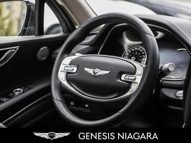 This 2024 GV80 2.5T Advanced is the top of the line package for the 4 cylinder 2.5T option. It represents a great entry point to a GV80 yet is still equipped with a long list of standard features that include the following -2.5L turbocharged inline 4-cylinder engine (300 hp 311 lb-ft) -All-Wheel Drive (AWD) with Terrain Mode Select -8-speed automatic transmission with steering wheel shift paddles -5-passenger seating -20'' aluminum alloy wheels with Michelin all-season tires -Genuine leather seating -Quad LED headlights with LED taillights side repeaters and reverse lights -Panoramic sunroof -Highway Driving Assist High Beam Assist Rear Cross-Traffic Collision-Avoidance Assist Forward Collision-Avoidance Assist and Intelligent Speed Limit Assist -Smart Cruise Control -14.5'' touch-screen navigation system -Head-Up Display (HUD) -Surround View Monitor -Blind-Spot View Monitor (BVM) -Premium Audio with 12 Speakers -Proximity keyless entry with push button start and remote engine start -Proximity-activated hands-free tailgate opening -Wireless charging -Heated leather steering wheel -Heated front seats and rear seats -Ventilated front seats -Rear occupant alert -Three-zone automatic climate control -Self-leveling rear suspension -Genesis Connected Services We are confident your shopping experience with us will be a luxury experience with our ''no pressure'' sales team who are here to help you make the right choice. We are conveniently located at 332 Ontario Street in St.Catharines right off the QEW. We look forward to having you here and experiencing the Genesis difference. **Free Carproof online! Specialist onsite for all credit approvals!**