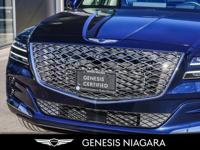 This 2021 GV80 3.5T Prestige is fully loaded with every possible option. Its road presence is made recognizable by the 22'' aluminum alloy wheels with Michelin all-season tires that are equipped on this GV80. This vehicle is the definition of luxury with features such as. - 3.5L twin-turbocharged V6 engine (375 hp 391 lb-ft torque) - Electronically Controlled Suspension with Road Preview - Genuine wood interior trim - 12.3'' 3D TFT LCD digital instrument cluster - Nappa leather seating with quilting - 21-speaker Lexicon premium audio system - Ergo Seat with 16-way drivers power-adjustment and extension - Remote Smart Parking Assist (RSPA) - Electronic Limited Slip Differential - Road Active Noise Cancellation - Forward Attention Warning - Parking Collision Avoidance-Assist Rear (PCA-R) - Smart Cruise Control - Wireless charging - Heated leather steering wheel - Heated front seats and rear seats - Ventilated front seats - 14.5'' touch-screen navigation system - Head-Up Display (HUD) - Surround View Monitor - Blind-Spot View Monitor (BVM) - Ventilated front and 2nd row seats - Microfibre suede headliner - Power-operated side rear sunshades - Soft close doors - and more We are confident your shopping experience with us will be a luxury experience with our ''no pressure'' sales team who are here to help you make the right choice. We are conveniently located at 332 Ontario Street in St.Catharines right off the QEW. We look forward to having you here and experiencing the Genesis difference. **Free Carproof online! Specialist onsite for all credit approvals!**