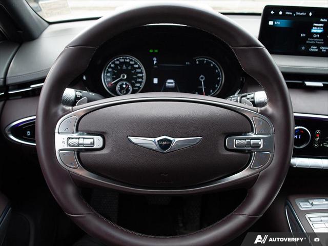 Step into the world of luxury and performance with the 2022 Genesis GV70 2.5T Advanced. This compact luxury sport utility vehicle is designed for those who appreciate the finer things in life without compromising on practicality. The striking red exterior is sure to turn heads while the 2.5L 4-cylinder engine delivers a seamless blend of power and efficiency perfectly complemented by the 8-speed automatic transmission and all-wheel drive system. Inside the GV70 offers a sophisticated interior with premium leather seating ensuring every journey is as comfortable as it is stylish. The heated seats provide warmth during those chilly Canadian winters while the advanced navigation system ensures you&rsquor ll always find the best route. Safety is paramount with traction control offering peace of mind on diverse terrains. Whether you&rsquor re navigating urban landscapes or embarking on a family adventure the Genesis GV70 is your ideal companion offering a dynamic driving experience with the versatility to meet all your needs. Experience the perfect harmony of sporty elegance and family-friendly features with the Genesis GV70.