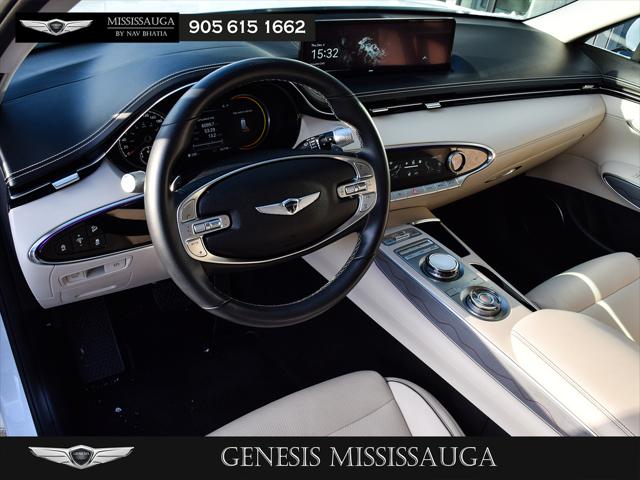 2023 Genesis GV70 2.5T Advanced Certified Pre-Owned Experience luxury performance and peace of mind with this Genesis Certified Pre-Owned 2023 GV70 Advanced. Powered by a responsive 2.5T turbo engine and All-Wheel Drive it delivers confident handling in all Canadian seasons. The Advanced Package elevates every drive with premium features including heated leather seating panoramic sunroof surround-view monitor power hands-free liftgate and a 12.3'' digital cluster for a modern intuitive cockpit. As a Genesis CPO vehicle it includes comprehensive warranty coverage multipoint inspection and exceptional ownership benefits for worry-free driving. The GV70s award-winning designbold lines signature Crest Grille and refined interiorsets it apart from anything else in its class. With low mileage meticulous condition and top-tier features this GV70 Advanced offers outstanding value and luxury at an attractive price point. Perfect for drivers seeking sophistication performance and long-term reliability.