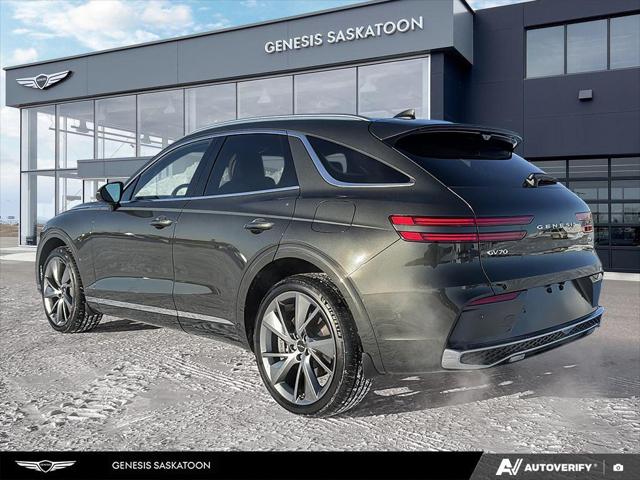 Our GV70's trim level is 2.5T Prestige. The interior of this luxury SUV is crafted for indulgent comfort and intelligent control featuring quilted Nappa leather seats with Ergo Motion technology heating ventilation and smart posture assist for both driver and passenger. A sweeping 27-inch OLED display integrates navigation media and vehicle data in stunning clarity enhanced by a 16-speaker Bang & Olufsen premium audio system with Dolby Atmos for an immersive listening experience. Everyday convenience is elevated with Smart Cruise Control with Stop & Go memory settings for the drivers seat mirrors and steering column as well as a power liftgate and remote start for seamless accessibility. Safety and driver assistance technologies provide peace of mind through Highway Driving Assist II Forward Collision-Avoidance with Pedestrian Detection Blind-Spot and Rear Cross-Traffic Collision Avoidance Evasion Assist and a full Aerial View Camera System with Remote Parking. This vehicle has been upgraded with the following features: B&O Audio HUD Cooled Seats Sunroof 360 Camera HUD Power Liftgate.