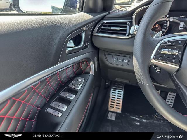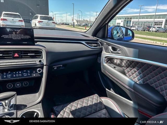 Our G70's trim level is 3.3T Sport. The interior radiates athletic luxury with deeply contoured Nappa leather sport seats featuring quilting and ventilation a sunroof a heated leather steering wheel and a suede headliner that heightens the sense of refinement. A 10.25-inch navigation touchscreen with split-screen capability anchors the cabin seamlessly integrating Apple CarPlay Android Auto and Genesis Connected Services while the 15-speaker Lexicon Quantum Logic Surround system fills the space with concert-level sound. Premium touches such as a power tilt-and-telescoping steering column memory settings for the driver and Smart Cruise Control with Stop & Go enhance daily driving comfort. Safety and confidence are built in with a suite of advanced technologies including Blind-Spot Collision-Avoidance Forward Collision-Avoidance with Pedestrian Detection an Aerial View Camera System and Highway Driving Assist for effortless control. This vehicle has been upgraded with the following features: Premium Audio Hud Sunroof 360 Camera Power Trunk Navigation Cooled Seats.