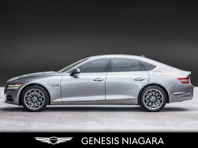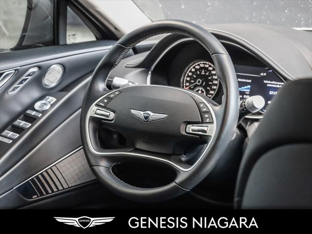 This 2023 G80 2.5T Advanced is a great value with the 2.5T Engine Option. This G80 is powered by a 2.5 Liter Turbo 4 Cylinder that makes an incredible 300HP and 311ft.lb of torque. Its road presence is made recognizable by the 19'' beautiful alloy wheels with Michelin all-season tires that are equipped on this G80. This vehicle has many nice features such as Adaptive Cruise Control Heads up Display Surround View Monitor Blind-Spot View Monitor Highway Driving Assist Lane Keeping Assist Forward Collision Avoidance 14.5'' touch-screen navigation system Proximity-activated hands-free tailgate opening Heated leather steering wheel Heated and Ventilated front seats Lexicon Sound System All-Wheel Drive (AWD) with Terrain Mode Select 8-speed automatic transmission with steering wheel shift paddles