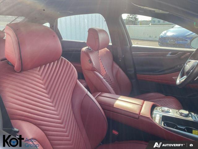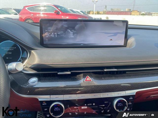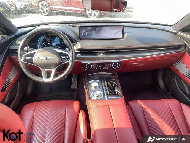 Discover refined luxury and confidence in this 2024 Genesis G80. Locally driven with just 19 000 km this executive sedan has been professionally maintained certified inspected and meticulously cared for. To add even greater value it includes complimentary maintenance up to 100 000 km ensuring peace of mind and worry-free ownership. This G80 has also never been smoked in preserving a clean and fresh interior.Step inside and enjoy premium comfort and cutting-edge technology including:Leather seating with heated and ventilated front seats for year-round comfortAdvanced safety features such as Blind-Spot Collision Avoidance Lane Keeping Assist and Smart Cruise ControlSurround View Monitor and Parking Sensors for effortless maneuvering12.3 infotainment display with navigation Apple CarPlay & Android AutoPremium audio system delivering rich sound qualityPanoramic sunroof to brighten every driveOn the road the Genesis G80 blends smooth performance with confident handling creating a driving experience that is both dynamic and refined.This rare combination of low mileage complimentary long-term maintenance and luxury features makes this G80 an outstanding choice for discerning drivers available now at Genesis Victoria.