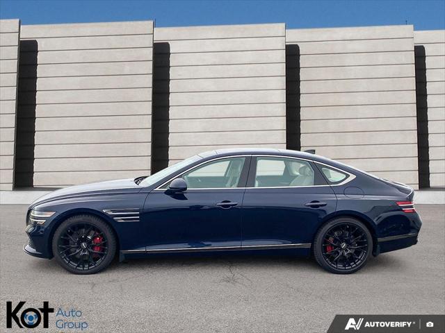 2023 Genesis G80 3.5T Locally Driven One Owner No AccidentsExperience refined luxury and exhilarating performance in this 2023 Genesis G80 3.5T. With only 39 000 km this sedan has been locally driven one-owner and accident-free making it an exceptional find for those seeking both confidence and sophistication.Highlights include a powerful 3.5L Twin-Turbo engine advanced safety technologies and premium interior comfort that defines the Genesis brand. This G80 is also Genesis Certified & Inspected giving you peace of mind with quality assurance.As part of Genesis ownership enjoy complimentary scheduled maintenance up to 100 000 km offering unmatched value and care for years ahead.Perfectly blending performance design and reliability this Genesis G80 stands out as a luxury sedan built to impress.