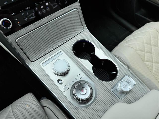 Our GV80's trim level is 3.5T Prestige AWD 7P. This luxurious SUV treats you to great standard features such as a 18-speaker Bang & Olufsen audio system an express open/close sunroof a power liftgate for rear cargo access ventilated and heated front seats with power adjustment and smart posture care a heated leather steering wheel voice-activated dual zone climate control adaptive cruise control and an expansive 27-inch infotainment screen with Apple CarPlay Android Auto inbuilt navigation and Genesis Connected Services. A bright and immersive driver's heads up display relays vital information when needed in tandem with great safety features like blind spot detection lane keeping assist with lane departure warning a 360-camera system evasive steering assist and front and rear collision mitigation.