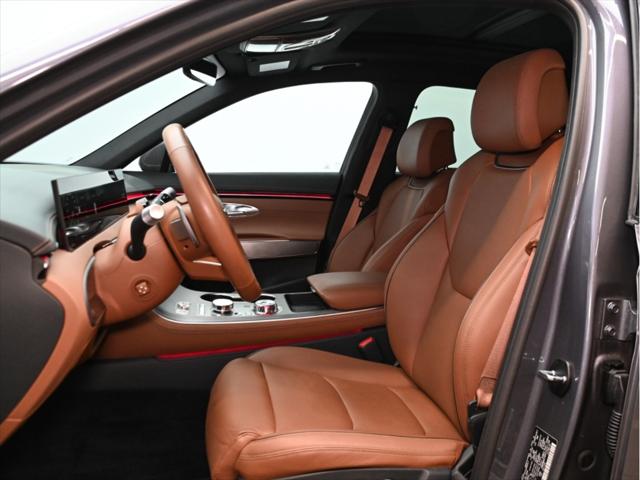 !!!Deux Sets de jantes (mags) et pneus!!! Moteur et performance Moteur 4 cylindres turbocompressé de 2 5 L Puissance : 300 ch à 5 800 tr/min Couple : 311 lb-pi de 1 650 à 4 000 tr/min Boîte automatique à 8 rapports Traction intégrale (AWD) Sélecteur de modes de conduite (Éco / Confort / Sport / Personnalisé) Consommation de carburant (L/100 km – approx.) Ville : 11 2 Route : 8 7 Combinée : 10 1 Caractéristiques extérieures Jantes en alliage de 21 po Phares à DEL quad et feux arrière à DEL Hayon intelligent électrique mains libres Toit ouvrant panoramique Rétroviseurs extérieurs chauffants et rabattables électriquement avec éclairage Genesis Essuie-glaces automatiques à détecteur de pluie Vitres arrière teintées Intérieur et confort Sièges garnis de cuir Sièges conducteur et passager à réglage électrique en 12 directions avec soutien lombaire Sièges avant chauffants et ventilés Sièges arrière extérieurs chauffants Volant chauffant Climatisation automatique à trois zones Colonne de direction à réglage électrique (inclinaison et télescopique) Éclairage dambiance intérieur Technologie et multimédia Écran OLED intégré de 27 po (tableau de bord et navigation) Services connectés Genesis Système de navigation avec info-trafic en temps réel Apple CarPlay™ et Android Auto™ sans fil Connectivité Bluetooth Recharge sans fil pour appareils mobiles Affichage tête haute Moniteur à vue panoramique (caméra 360°) Assistance au stationnement à distance Sécurité et aides à la conduite Assistance à lévitement de collision frontale (véhicules piétons cyclistes) Assistance à lévitement de collision dans les angles morts Alerte de collision transversale arrière avec freinage Assistance à la conduite sur autoroute II Régulateur de vitesse intelligent avec arrêt/démarrage Assistance au maintien et au suivi de voie Alerte dattention du conducteur Assistance à la sortie sécuritaire Assistance à lévitement de collision lors du stationnement (arrière)