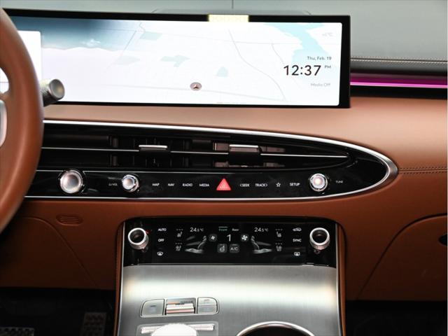 !!!Deux sets de jantes (mags) et pneus!!! Moteur et performance Moteur 4 cylindres turbocompressé de 2 5 L Puissance : 300 ch à 5 800 tr/min Couple : 311 lb-pi de 1 650 à 4 000 tr/min Boîte automatique à 8 rapports Traction intégrale (AWD) Sélecteur de modes de conduite (Éco / Confort / Sport / Personnalisé) Consommation de carburant (L/100 km – approx.) Ville : 11 2 Route : 8 7 Combinée : 10 1 Caractéristiques extérieures Jantes en alliage de 19 po Phares à DEL quad et feux arrière à DEL Hayon intelligent électrique mains libres Toit ouvrant panoramique Rétroviseurs extérieurs chauffants et rabattables électriquement avec éclairage Genesis Essuie-glaces automatiques à détecteur de pluie Vitres arrière teintées Intérieur et confort Sièges garnis de cuir Sièges conducteur et passager à réglage électrique en 12 directions avec soutien lombaire Sièges avant chauffants et ventilés Sièges arrière extérieurs chauffants Volant chauffant Climatisation automatique à trois zones Colonne de direction à réglage électrique (inclinaison et télescopique) Éclairage dambiance intérieur Technologie et multimédia Écran OLED intégré de 27 po (tableau de bord et navigation) Services connectés Genesis Système de navigation avec info-trafic en temps réel Apple CarPlay™ et Android Auto™ sans fil Connectivité Bluetooth Recharge sans fil pour appareils mobiles Affichage tête haute Moniteur à vue panoramique (caméra 360°) Assistance au stationnement à distance Sécurité et aides à la conduite Assistance à lévitement de collision frontale (véhicules piétons cyclistes) Assistance à lévitement de collision dans les angles morts Alerte de collision transversale arrière avec freinage Assistance à la conduite sur autoroute II Régulateur de vitesse intelligent avec arrêt/démarrage Assistance au maintien et au suivi de voie Alerte dattention du conducteur Assistance à la sortie sécuritaire Assistance à lévitement de collision lors du stationnement (arrière)