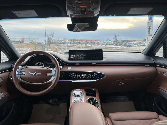 This Genesis GV70 boasts a Intercooled Turbo Premium Unleaded I-4 2.5 L/152 engine powering this Automatic transmission. UYUNI WHITE HAVANA BROWN/BLUE LEATHER SEATING SURFACES Wireless Phone Connectivity.*This Genesis GV70 Comes Equipped with These Options *Window Grid Antenna Wheels: 19" x 8.0J Dark Hyper Silver Aluminum Valet Function Trip Computer Transmission: 8-Speed Automatic -inc: shift-by-wire paddle shifters and drive mode select (comfort eco sport sport plus and custom) Transmission w/Driver Selectable Mode and Oil Cooler Tracker System Tires: P235/55R19 AS Tire Specific Low Tire Pressure Warning Strut Front Suspension w/Coil Springs.****Payments O.A.C.*The advertised price does not include GST. Discounts may include available manufacturer discounts and/or incentives. Discounts and/or incentives from both the dealership and manufacturer may have certain criteria for eligibility and must be qualified for depending on the nature of the discount and model of vehicle involved. Discounts offered by the manufacturer have discrete legal regulations available on the corresponding manufacturer site. See dealer for all current discount eligibility details. Vehicle data is subject to change without notice. AMVIC Licensed Dealer.