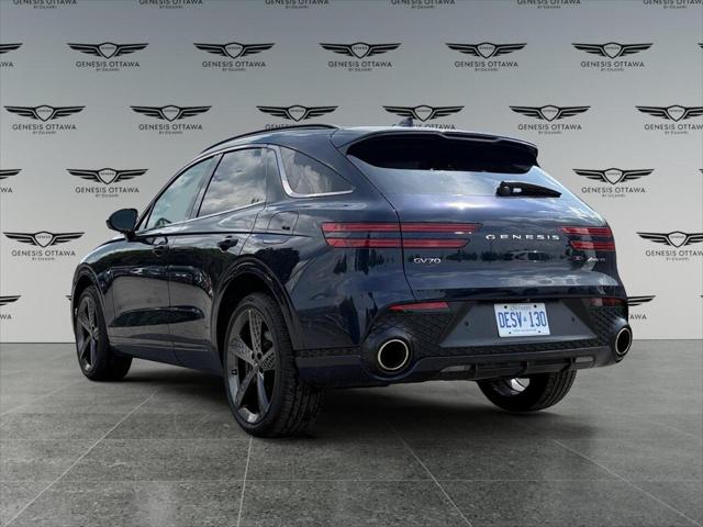 Experience the ultimate in luxury and performance with the new Genesis GV70 3.5T Sport Plus w-LSD. This stunning blue AWD SUV is equipped with a 3.5L 6-cylinder engine and a smooth automatic transmission  making every drive an exhilarating yet controlled adventure.  The elegant exterior is paired with refined black leather interior  providing a sophisticated and serene environment for all passengers. Offering remarkable styling  the GV70 comes with features like retractable alloy wheels and a classy sunroof/moonroof that accentuate its fresh and modern design.  Stay connected and safe with advanced technologies including a state-of-the-art navigation system  heads-up display  and smart device integration. The GV70 prioritizes safety with essential features such as a backup camera  lane assist  parking sensors  and advanced brake assist. Premium comforts include air conditioning  heated and cooled seats  and convenient power features like windows and seats.  If you're an enthusiast of high-performance vehicles seeking both power and luxury  this GV70 is designed for you. Don't miss your chance to own this sophisticated SUV. Contact us today for more details and schedule a test drive to feel the exceptional blend of comfort and innovation this Genesis offers.
